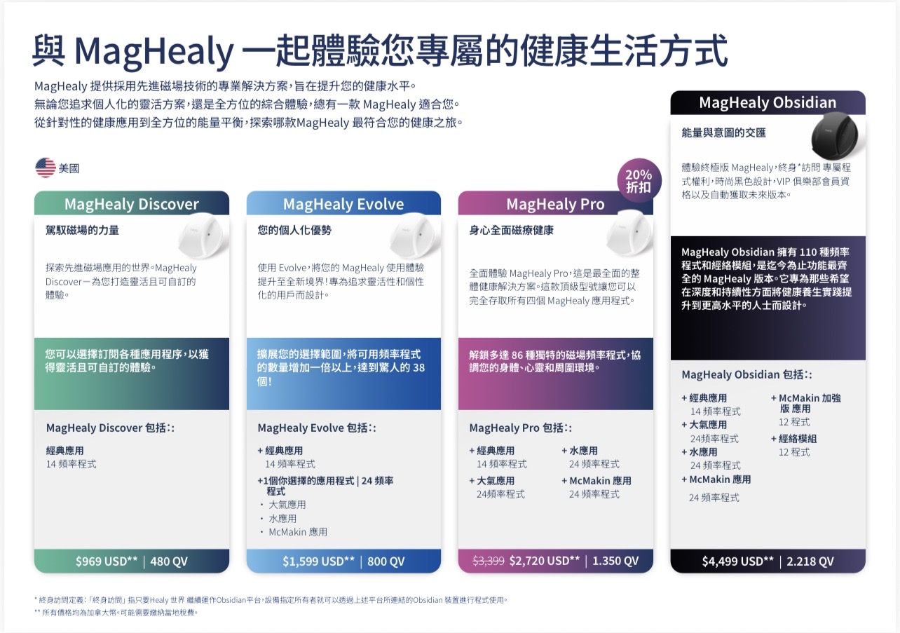 通过 MagHealy Evolve,你可以永久添加一个额外应用——Atmosphere、Water 或 McMakin——打造专属于你的个性化健康体验。